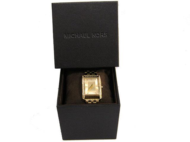 This is a Michael Kors Women's MK3128 Gold 5-Link Rectangle Glitz Watch with the following features: gold band; analog; quartz movement; gold-tone stainless steel; 3 hand rectangle dial with glitz; 5 link bracelet; Water-resistant to 165 feet (50 M); and 26 mm Case diameter.