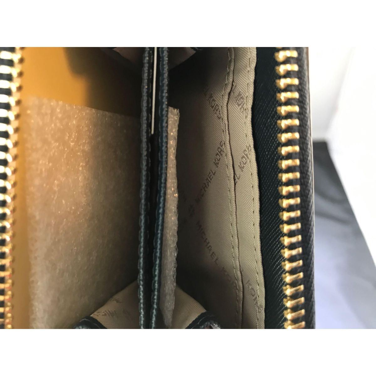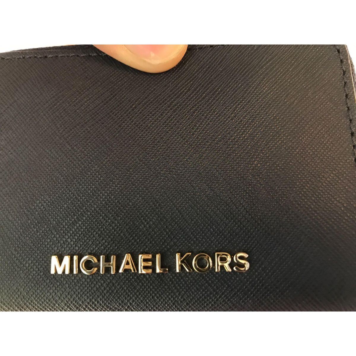 Small, black genuine leather Michael Kors designer change purse with black strap and gold snap. - #254-254-14