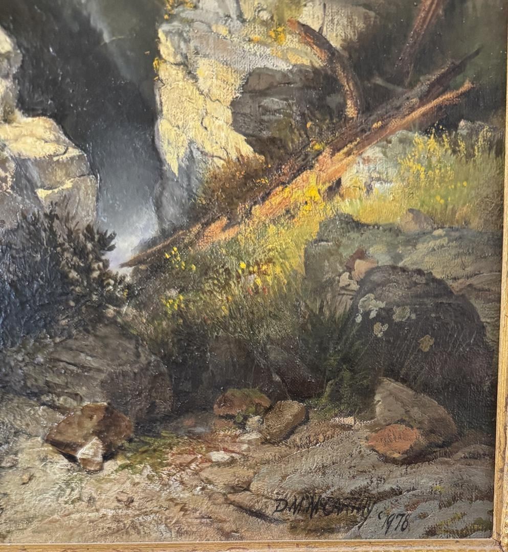 Title is Yosemite National Park. 18" by 24" unframed. 27" by 33" framed. Oil on Canvas. Provenance: The Artist, Husberg Fine Arts Gallery Sedona, Current owner through descent. Michael McCarthy (Born 1951) is active/lives in Arizona. Michael McCarthy is known for National park landscape painting, rock formation specialty. D. Michael McCarthy was born in Los Angeles, California in 1951. He later combined his attraction to artworks positioned in fine art museums to his love of natural outdoor settings to become a Southwestern landscape painter. McCarthy has been invited to participate in Artist in Residence programs in several national parks, twice serving as Artist in Residence at Glacier National Park. In 1998 he was named International Peace Park Artist of the Year. His work is included in the permanent collection of the National Park Service. McCarthy is routinely represented by the El Prado Gallery in Sedona, Arizona. The above biography was absorbed from their gallery website.