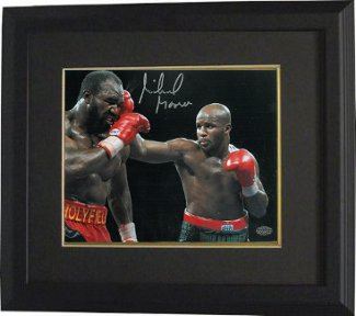 Michael Moorer is one of only four men (the others being Muhammad Ali, Evander Holyfield and Lennox Lewis) to win one or more versions of the world heavyweight championship on three separate occasions, as well as being a former world light-heavyweight champion. He is one of only four men (the others being Bob Fitzsimmons, Michael Spinks and Roy Jones, Jr.) to win world titles at both light-heavyweight and heavyweight. Michael Moorer has hand signed this 8x10 Photo from his fight vs Evander Holyfield on April 22, 1994. Leaf Authentics Hologram and Certificate of Authenticity from Athlon Sports. Custom Black Mat and Premium Black Frame as shown.