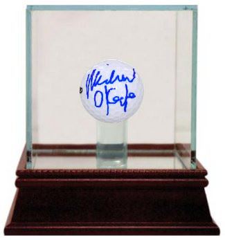 Michael O'Keefe's best known film role is Danny Noonan in the comedy film Caddyshack. He received a Best Supporting Actor Oscar nomination for his role in The Great Santini. Caddyshack is a 1980 American sports comedy film directed by Harold Ramis. It stars Chevy Chase, Rodney Dangerfield, Ted Knight, Bill Murray, and Michael O'Keefe. The film has garnered a large cult following and has been hailed by many publications, such as Time and ESPN, as one of the funniest sports movies of all time. As of 2010, Caddyshack has been televised on the Golf Channel as one of its "Movies That Make the Cut". Michael O'Keefe has hand signed this Bushwood Country Club Logo Golf ball. Steiner Sports Hologram and Certificate of Authenticity. Glass display case included!