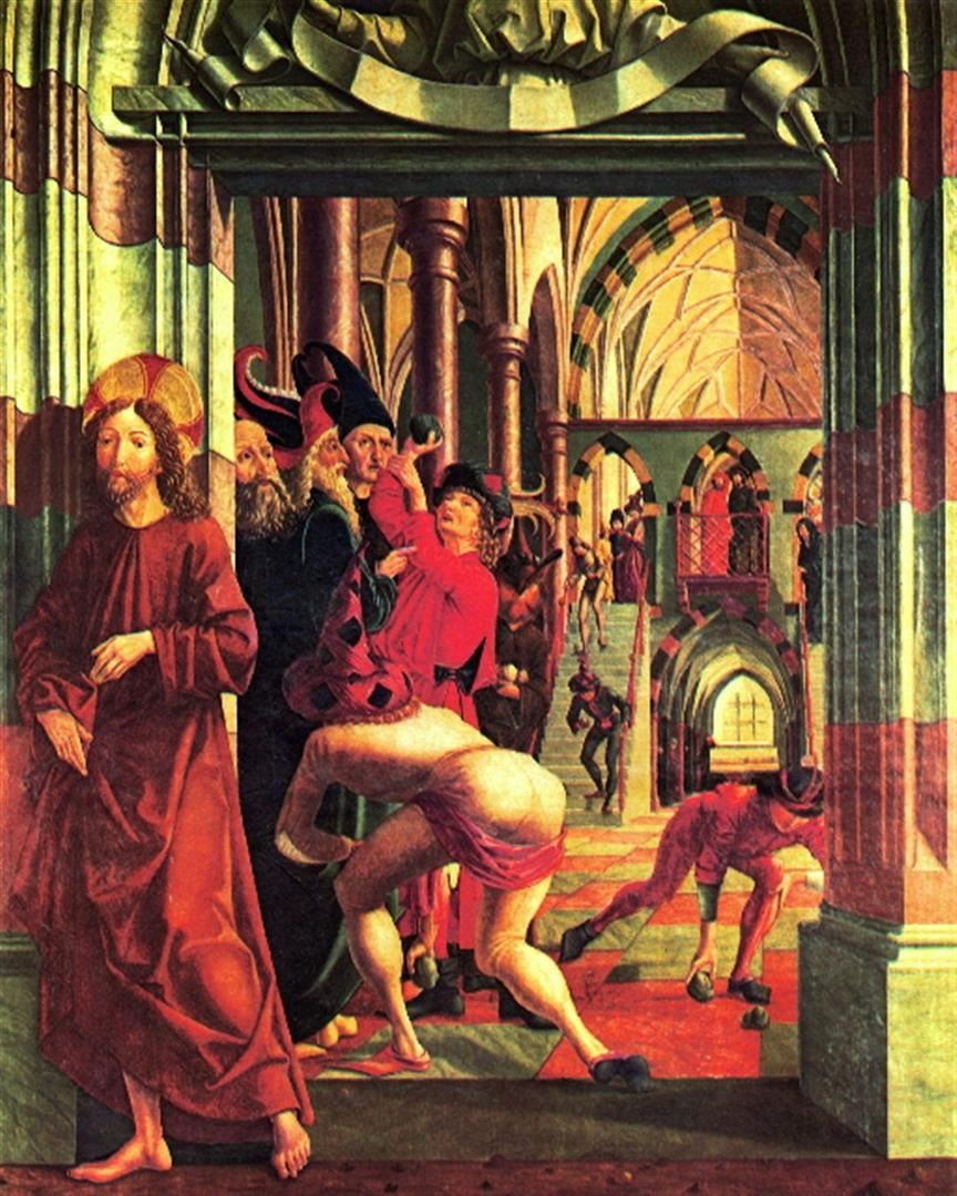 Artist: Michael Pacher - Title: Stoning of Christ - Medium: Fine Art Giclee on Canvas - Image Size: Approximately 32 inches x 25.75 inches - Unframed on Unstretched Canvas - Biography: Michael Pacher(c. 1435 - August 1498) was a painter and sculptor from Tyrol active during the second half of the fifteenth century. He was one of the earliest artists to introduce the principles of Renaissance painting into Germany. Pacher was a comprehensive artist with a broad range of sculpting, painting, and architecture skills producing works of complex wood and stone. He painted structures for altarpieces on a scale unparalleled in North European art.