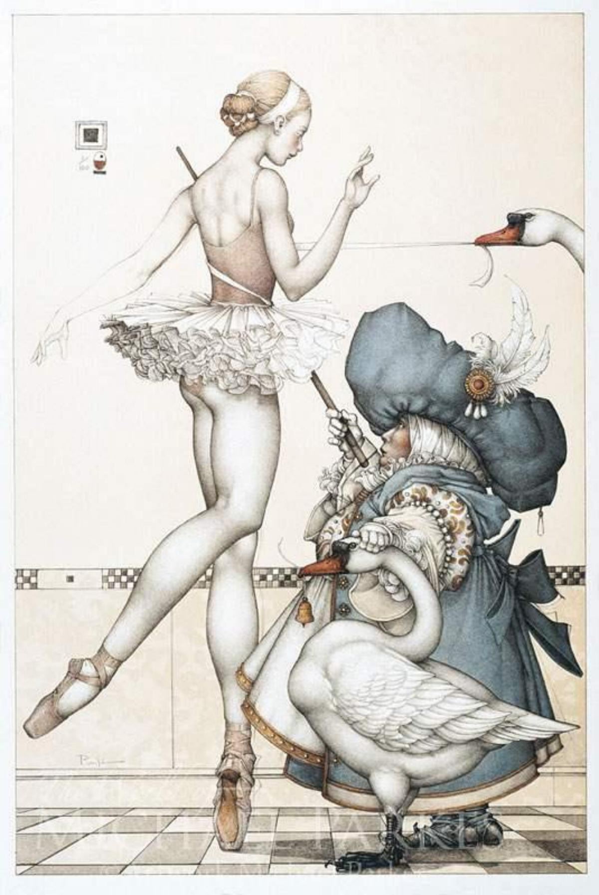 Artist: Michael Parkes. Medium: Original Hand Pulled Stone Lithographs. Title: Ballet Mistress. Size: 27.5" x 18.5" inches. 160. : .