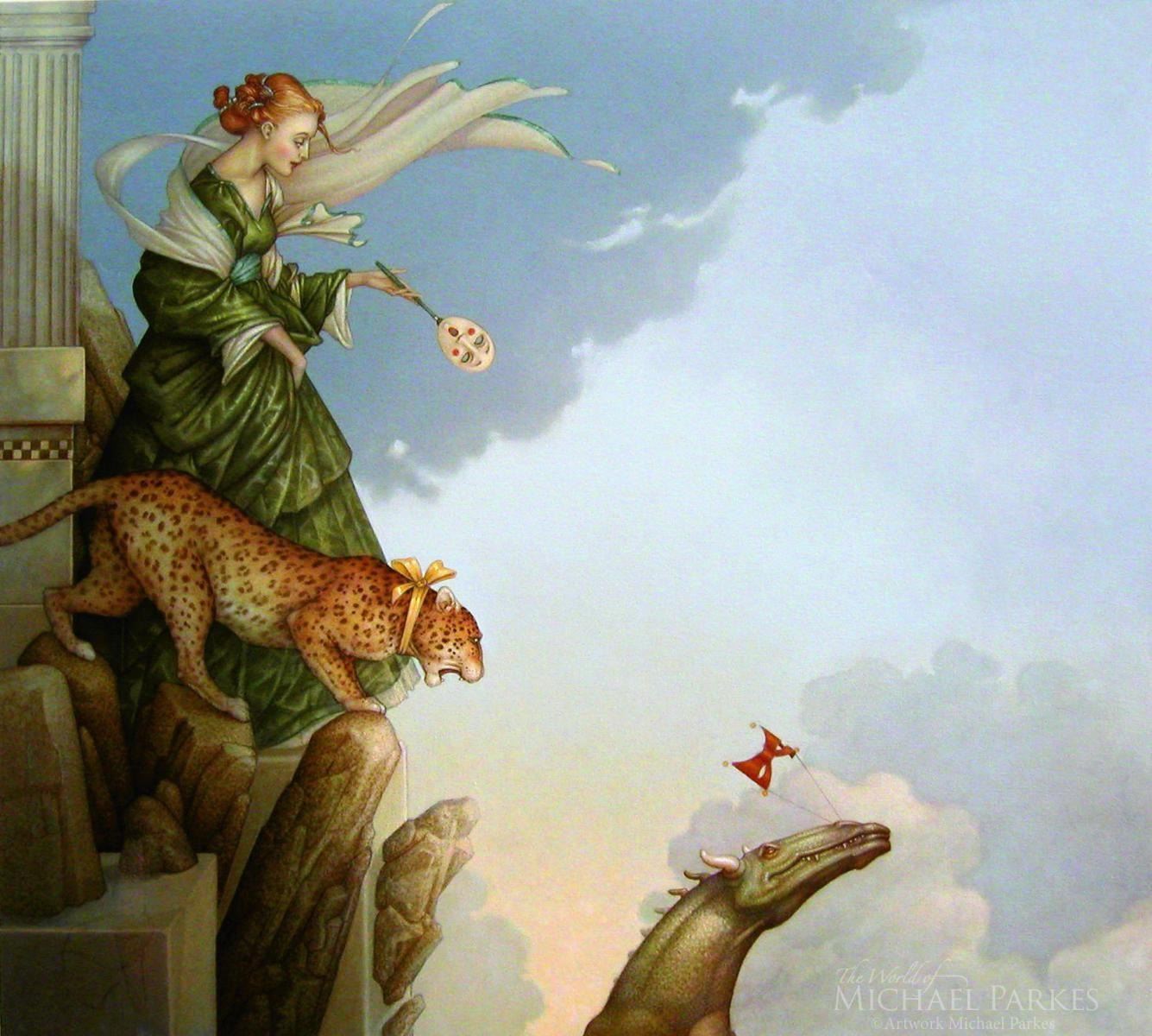 Artist: Michael Parkes. Medium: Masterworks on Canvas. Title: Fearless. Size: 27½”x 24½”. 60. : .