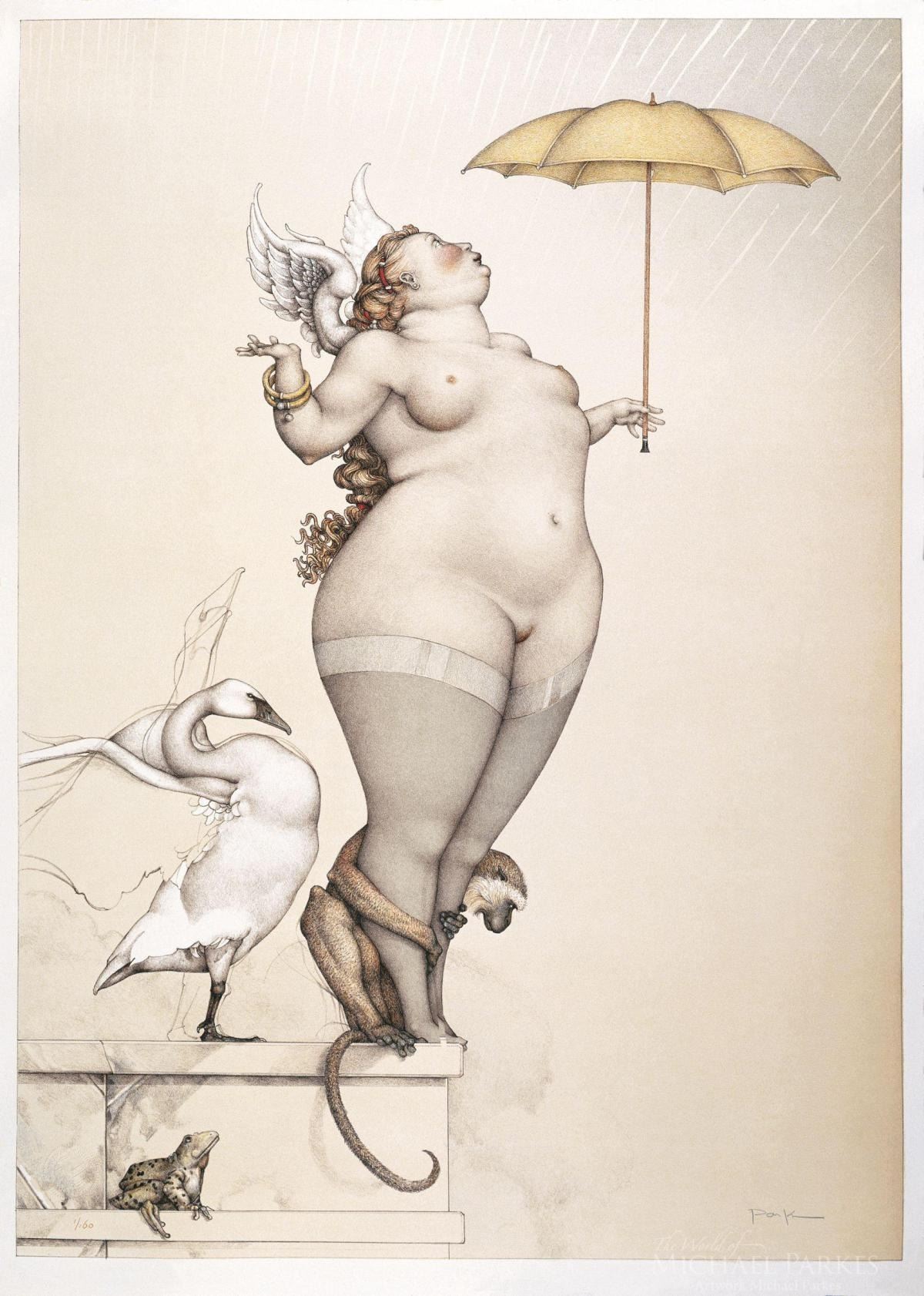 Artist: Michael Parkes. Medium: Original Hand Pulled Stone Lithographs. Title: Rain. Size: 28" x 19.75" inches. 160. : .
