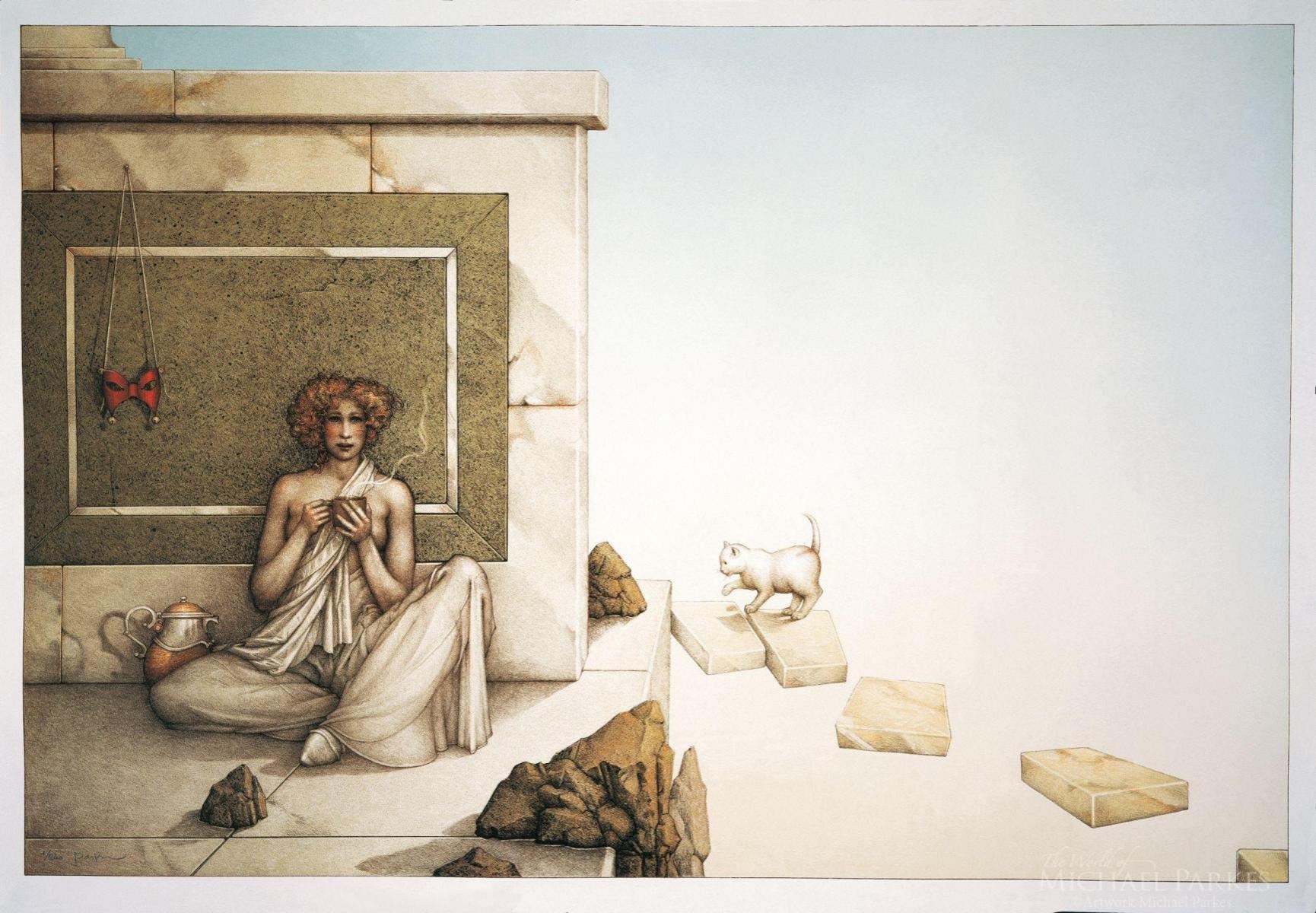 Artist: Michael Parkes. Medium: Original Hand Pulled Stone Lithographs. Title: The Mask. Size: 26" x 37.75" inches. 240. : .