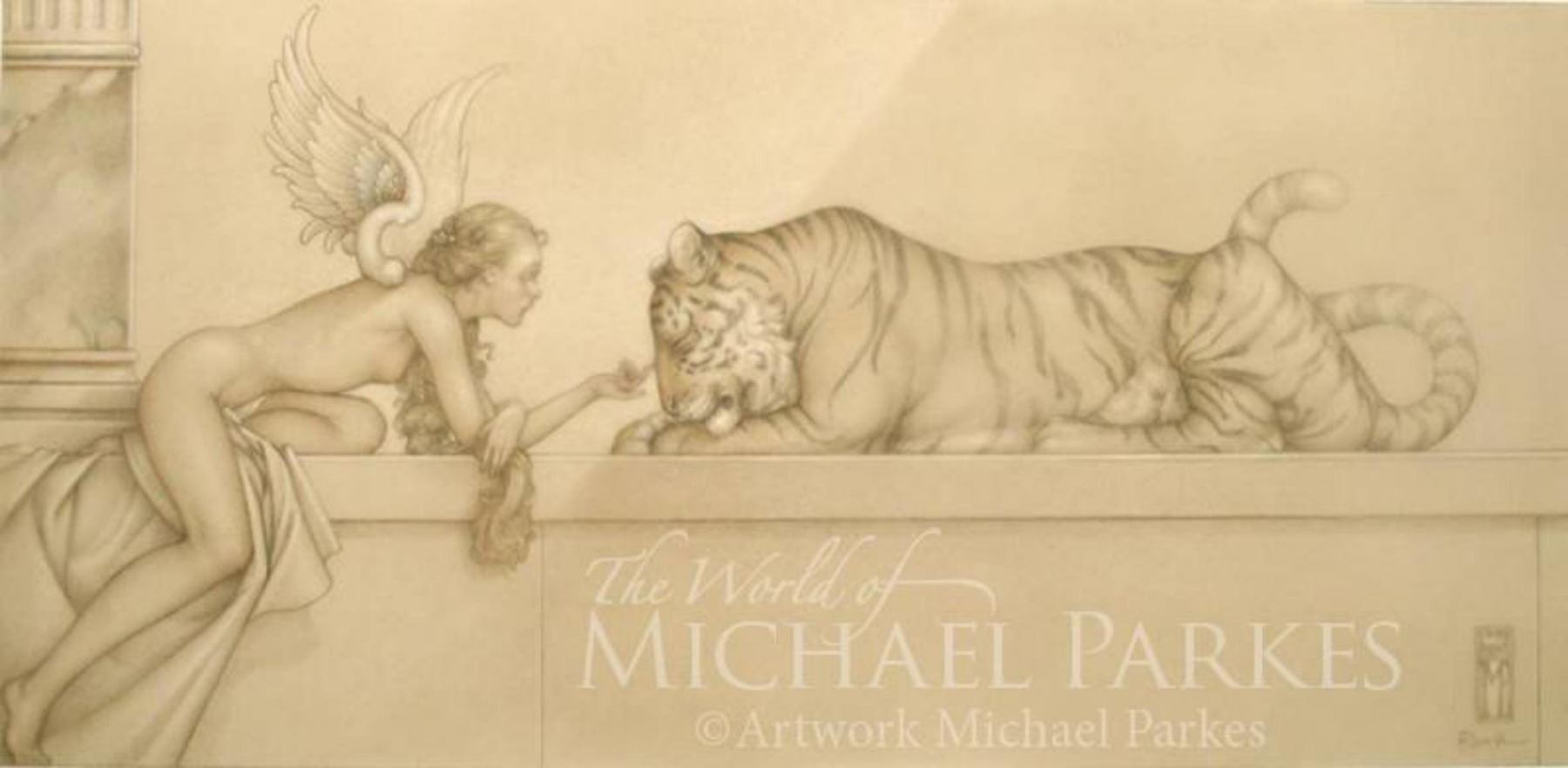 Artist: Michael Parkes. Medium: Masterworks on Vellum. Title: Tiger, Tiger. Size: 13.2 x 28.3 inches. Edition: Edition of 50 S&N 7 EA's. Certificate of authenticity is included.