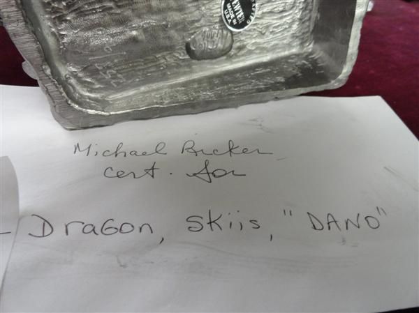 Michael Ricker Pewter Figure Dragon w/Skis (W. Cert.)