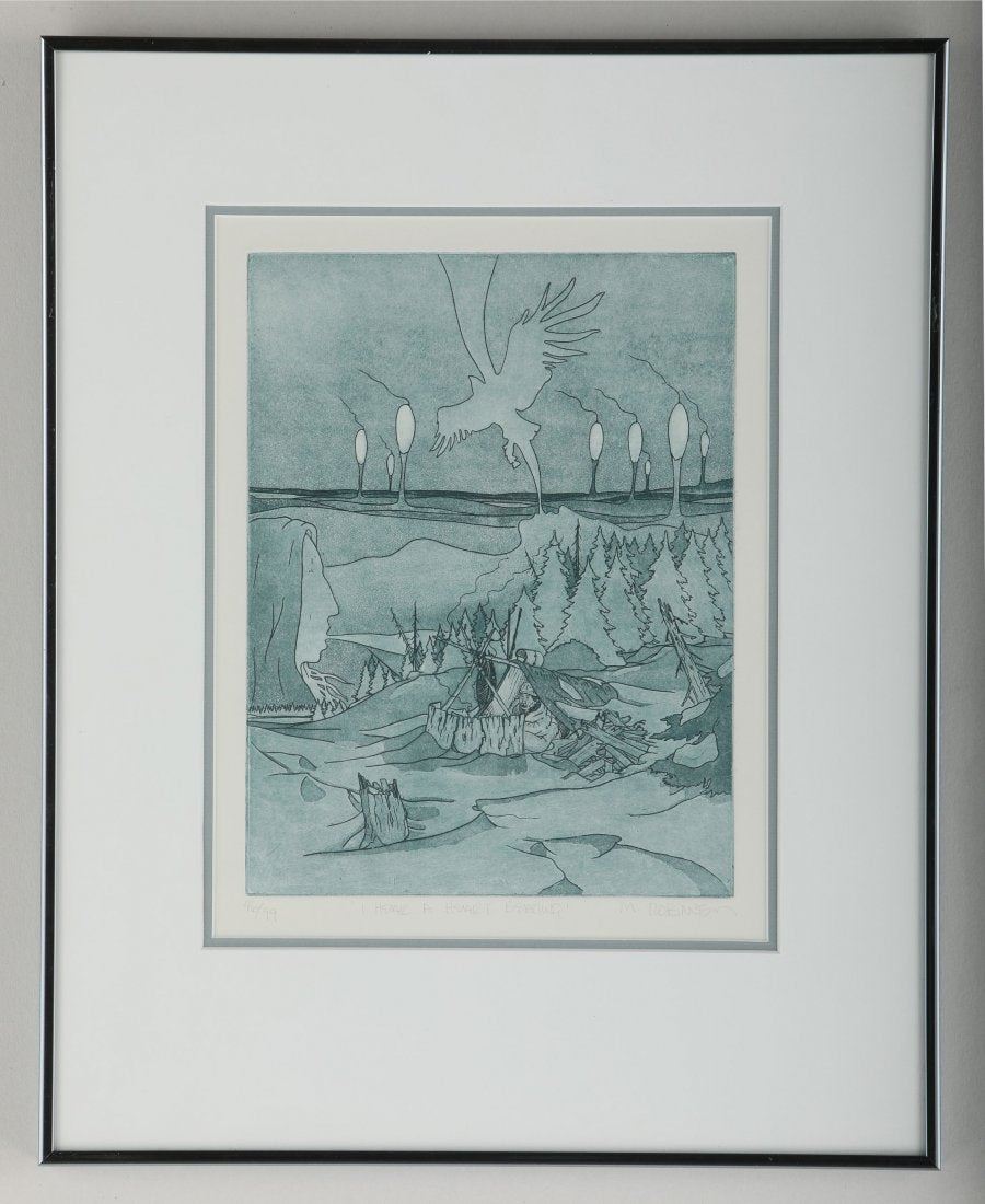 Michael Robert Robinson's "I Hear a Heart Beating" limited edition etching, signed, titled, and numbered 46/99. Image- 11 1/2" x 8 3/4". Frame- 20 1/4" x 16 1/4".