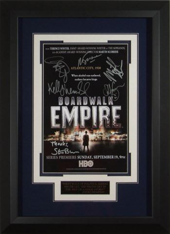 Boardwalk Empire is an American period crime drama television series created by Terence Winter and aired on premium cable channel HBO. The series is set in Atlantic City, New Jersey during the Prohibition era and stars Steve Buscemi as Nucky Thompson. Boardwalk Empire received widespread critical acclaim, particularly for its visual style and basis on historical figures, as well as for Buscemi's lead performance.This is an signed Publicity Masterprint 11x17 inch movie poster with museum Quality Black Framing as shown to an overall size of 22x30. Martin Scorsese, Steve Buscemi (Enoch 'Nucky' Thompson), Michael Pitt(Jimmy), Kelly MacDonald (Margaret Schroeder), Michael Shannon (Agent Nelson), and Stephen Graham (Al Capone). have signed this. The perfect addition to complement any Home Theater Collection. Witnessed, Examined, and Certified Authentic (Lifetime) by Millionaire Gallery, Inc.