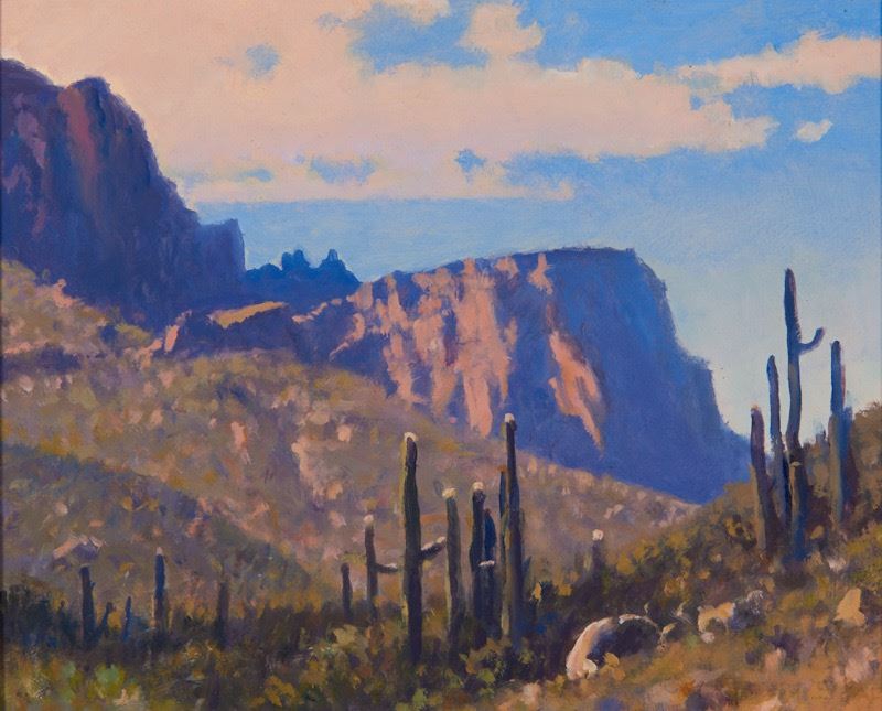 To the unaided eye, this piece appears to be in excellent condition. Inspection under ultraviolet light reveals a normal fluorescence of the artist's pigments. There are no signs of damage or restoration. The piece is framed in a semi-ornate gold panel frame. The frame is in very good condition with normal signs of wear. Verso: [handwritten on back of panel] Varnished 2015, Morning in May © 2015; [stamped on back of panel] Artist Retains All Reproduction Rights; [tag attached to backing] The Legacy Gallery, Bozeman, Jackson Hole, Scottsdale