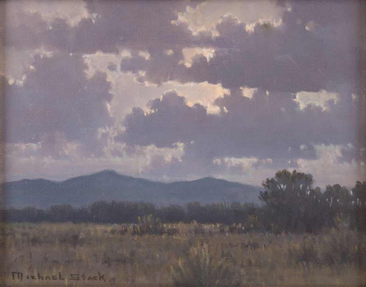 Michael Stack (1947 - ). Cochiti County Moon. 8" x 10" oil on canvas. Signed lower left. Verso: Titled and dated 2001.