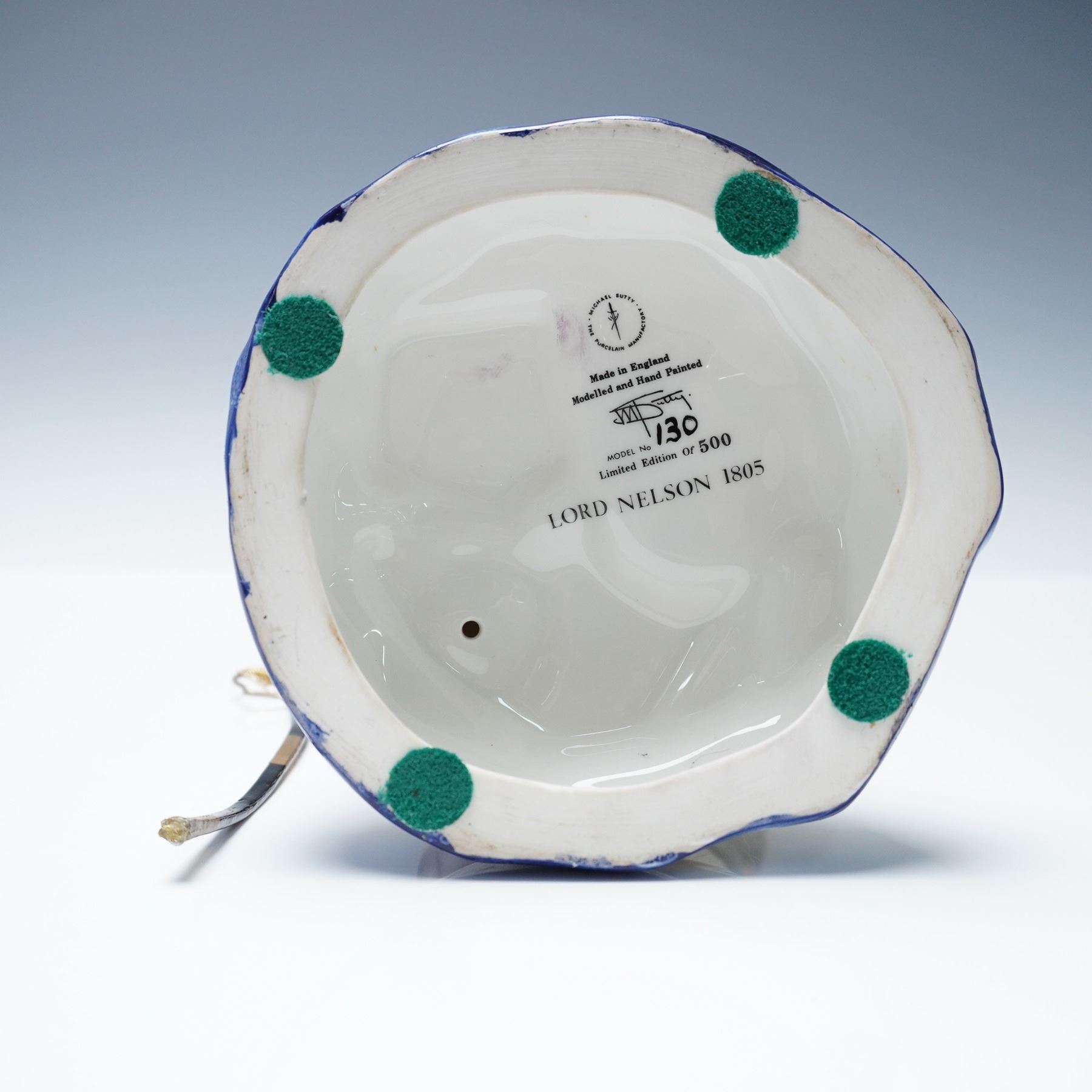 This limited edition model, number 130 of 500, was made in England and is both modelled and hand-painted. The figurine presents Admiral Nelson in full naval uniform, complete with sash, medals, and sword, standing with one foot raised on a rock. The base is marked with Sutty's hallmark and production details, including the model number and edition size. Produced to commemorate the British naval commander known for his role in the Battle of Trafalgar.