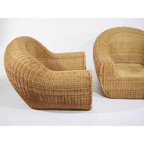 Artist Name: Michael Taylor<BR>Manufacturer: Wicker Wicker Wicker<BR>Description: Pair of oversized lounge chairs<BR>Circa: designed circa 1980<BR>Medium: <BR>Signature: <BR>Measurements: 37"h x 45"w x 46"d<BR>Edition: <BR>Notes: <BR>Literature / Provenan