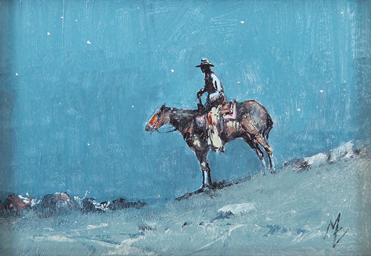 Michael Ome Untiedt (1952 - ). Quiet Watch. 5" x 7" study, oil on board. Signed lower right. Verso: Signed and dated 2015.