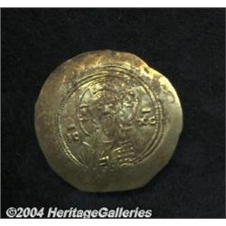 <B>Michael VII.</B></I> 1071-1078. AV histamenon nomisma (29 mm, 4.42 g). Constantinople. Bust of Christ facing, raising right hand in benediction and holding Gospels / Crowned facing bust of Michael, holding labarum and globus cruciger. DOC 2d; SB 1868. VF, obverse encrustation. <BR><I>From the Geneva Collection.</B></I> <BR><BR><B>Important notice:</B> Heritage usually auctions material at the rate of 200-250 lots per hour. On some occasions eBay Live bid software or the Internet may not be able to keep up with the pace of the auction. We recommend placing a realistic absentee bid now as insurance to avoid disappointment. Occasionally the auctioneer may eliminate or reject an eBay Live bid, and the auctioneer may also reopen a lot after the close of the eBay live bidding (usually because we missed an audience bid), and may reject your bid even if it shows you as the winning bidder. By bidding via eBay Live, you agree that Heritage may award the lot to another bidder at its sole discretion under the circumstances described above or any other reasonable circumstances. Since eBay bids are not shown to us until we open the lot on the floor, we treat those bids just like floor bids. In most cases the floor responds before the eBay bid is presented to us, due to Internet lag time, so for consistency we have made it a policy that floor bids are always considered first over tie eBay live bids. Also please note that all Heritage lots purchased through eBay Live carry a 20% Buyer's Premium. Please make sure you read the Terms and Conditions before you bid.