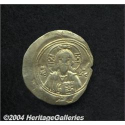 <B>Michael VII.</B></I> 1071-1078. AV histamenon nomisma (24 mm, 3.19 g). Constantinople. Bust of Christ facing, raising right hand in benediction and holding Gospels / Crowned facing bust of Michael, holding labarum and globus cruciger. DOC 2d; SB 1868. Near F, clipped and flattened. <BR><I>From the Geneva Collection.</B></I> <BR><BR><B>Important notice:</B> Heritage usually auctions material at the rate of 200-250 lots per hour. On some occasions eBay Live bid software or the Internet may not be able to keep up with the pace of the auction. We recommend placing a realistic absentee bid now as insurance to avoid disappointment. Occasionally the auctioneer may eliminate or reject an eBay Live bid, and the auctioneer may also reopen a lot after the close of the eBay live bidding (usually because we missed an audience bid), and may reject your bid even if it shows you as the winning bidder. By bidding via eBay Live, you agree that Heritage may award the lot to another bidder at its sole discretion under the circumstances described above or any other reasonable circumstances. Since eBay bids are not shown to us until we open the lot on the floor, we treat those bids just like floor bids. In most cases the floor responds before the eBay bid is presented to us, due to Internet lag time, so for consistency we have made it a policy that floor bids are always considered first over tie eBay live bids. Also please note that all Heritage lots purchased through eBay Live carry a 20% Buyer's Premium. Please make sure you read the Terms and Conditions before you bid.