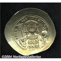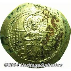 <B>Michael VII.</B></I> 1071-1078. EL histamenon nomisma (28 mm, 4.37 g). Constantinople. Christ enthroned facing, raising right hand in benediction and holding Gospels / Crowned facing bust of Michael, holding labarum in right hand, globus cruciger in left. DOC 1; SB 1869. XF, encrustations on obverse (probably should be removed). <BR><I>From the Geneva Collection.</B></I> <BR><BR><B>Important notice:</B> Heritage usually auctions material at the rate of 200-250 lots per hour. On some occasions eBay Live bid software or the Internet may not be able to keep up with the pace of the auction. We recommend placing a realistic absentee bid now as insurance to avoid disappointment. Occasionally the auctioneer may eliminate or reject an eBay Live bid, and the auctioneer may also reopen a lot after the close of the eBay live bidding (usually because we missed an audience bid), and may reject your bid even if it shows you as the winning bidder. By bidding via eBay Live, you agree that Heritage may award the lot to another bidder at its sole discretion under the circumstances described above or any other reasonable circumstances. Since eBay bids are not shown to us until we open the lot on the floor, we treat those bids just like floor bids. In most cases the floor responds before the eBay bid is presented to us, due to Internet lag time, so for consistency we have made it a policy that floor bids are always considered first over tie eBay live bids. Also please note that all Heritage lots purchased through eBay Live carry a 20% Buyer's Premium. Please make sure you read the Terms and Conditions before you bid.