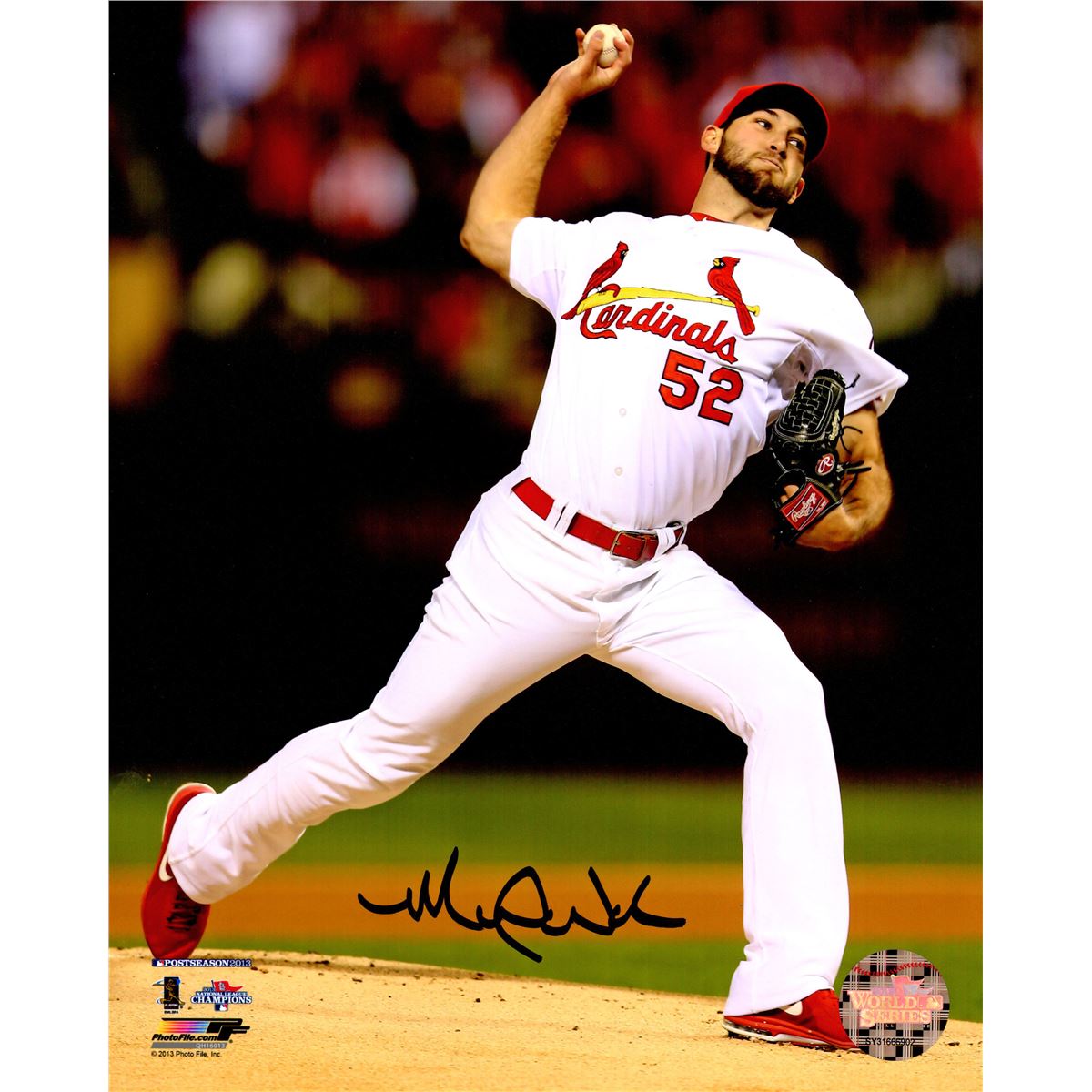 Michael Wacha signed St Louis Cardinals 2013 World Series pitching action 8x10 photo. Item comes with a Schwartz Sports Memorabilia tamper-proof numbered hologram and Certificate of Authenticity which can be verified online.