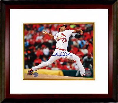 Michael Wacha is an American professional baseball pitcher for the St. Louis Cardinals. The Cardinals selected Wacha in the first round of the 2012 Major League Baseball Draft from Texas A&M. With just one year in the minor leagues, he made his MLB debut on May 30, 2013. Following a strong regular season, Wacha earned the 2013 National League Championship Series Most Valuable Player Award, after yielding one run and eight hits in his first 21 postseason innings pitched. Michael Wacha has hand signed this St. Louis Cardinals 8x10 Photo. LOJO Sports Hologram and Certificate of Authenticity from Athlon Sports Collectibles. Custom White Mat and Premium Mahogany Frame as shown