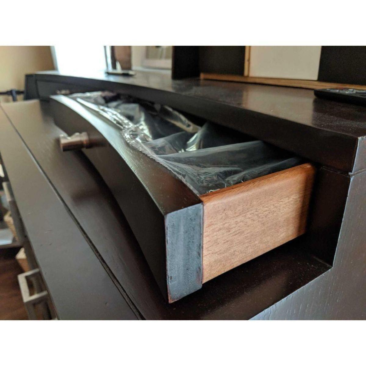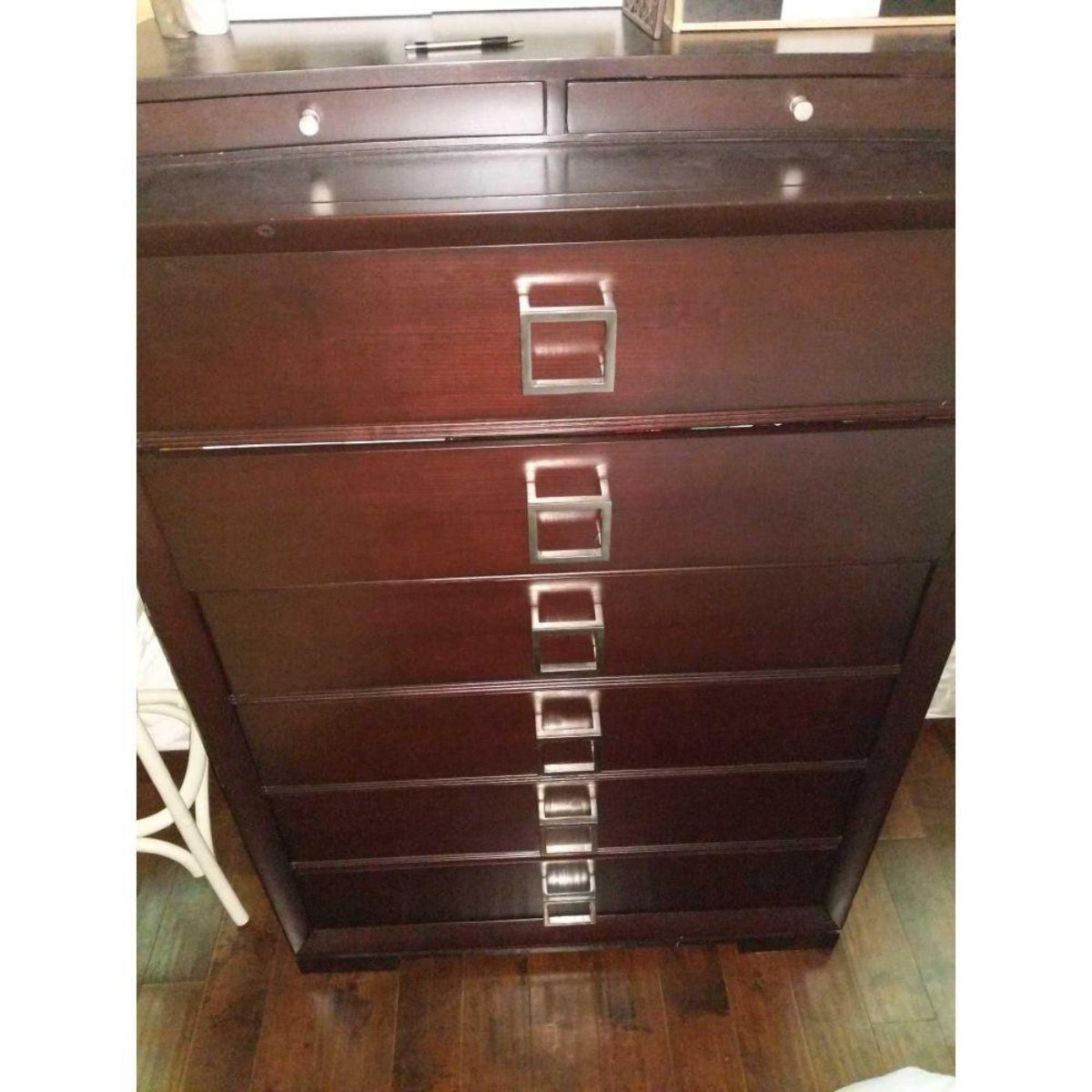 This Michael Weiss designer piece measures 60.5Hx 41"W 23"L and is solid wood. 6 drawer dresser with two jewelry/accessory set-back drawers on top. Like new. Jewelry tray still has original plastic covering. Learn more about the Michael Weiss designer line here: https://vanguardfurniture.com/MichaelWeiss