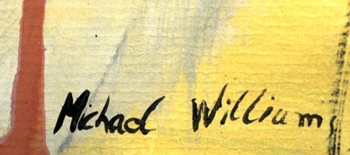 Oil on paper in the manner of Michael Williams "Kisser", bearing the signature. Unframed dimensions approx 19 x 13 inches.
