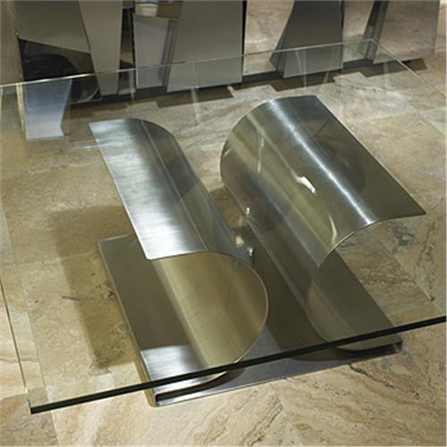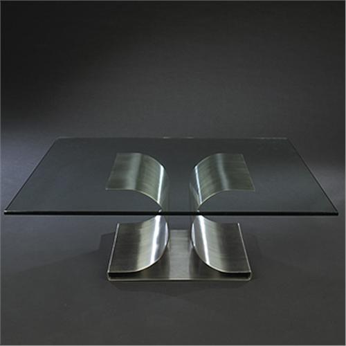 Michel Boyer X Base table France, 1968 stainless steel, glass 40"w x 40"d x 13"h Literature: Michel Boyer, Jousset, pg. 8