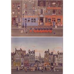 CITY SCENES, two color lithographs, each 12 x 17", signature in the stone. (2) STARTING BID $20. ESTIMATE $20 TO $1000
