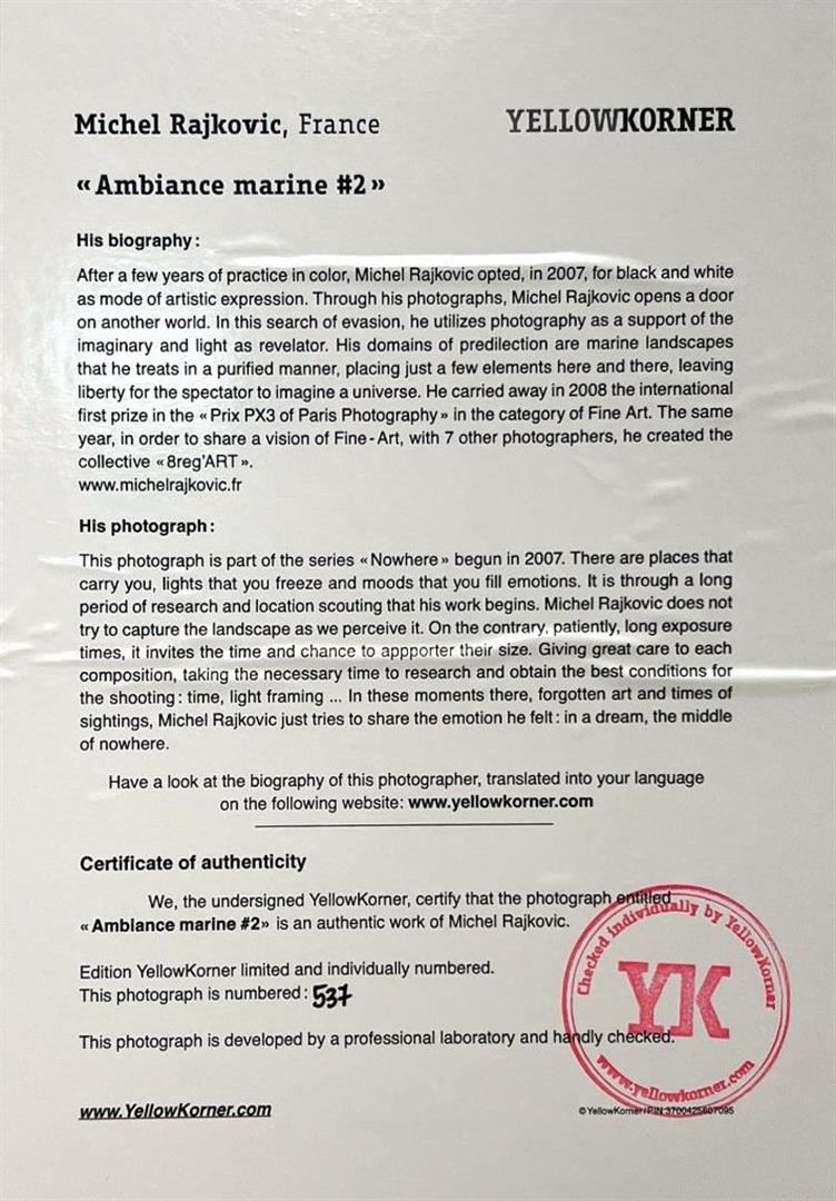 Michel Rajkovic France Ambiance Marine #2 YellowKorner Certified Photograph. Certificate of Authenticity from YellowKorner affixed to the back. Matted Dimensions 16"x20". Protected with Clear Mylar Sleeve.