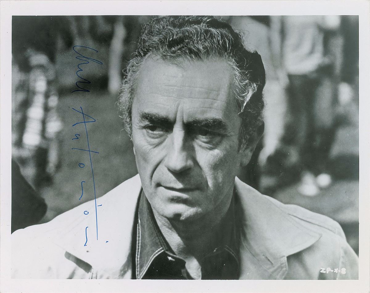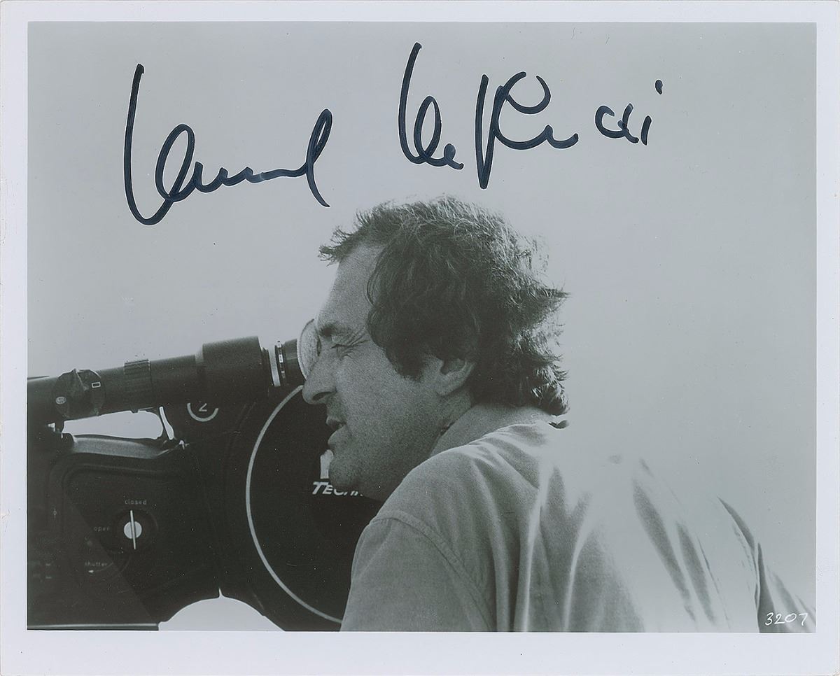 Nice pairing of two Italian directors: a glossy 10 x 8 photo of Michelangelo Antonioni, signed vertically in blue ink; and a glossy 10 x 8 photo of Bernardo Bertolucci, signed in black felt tip. In overall fine condition.