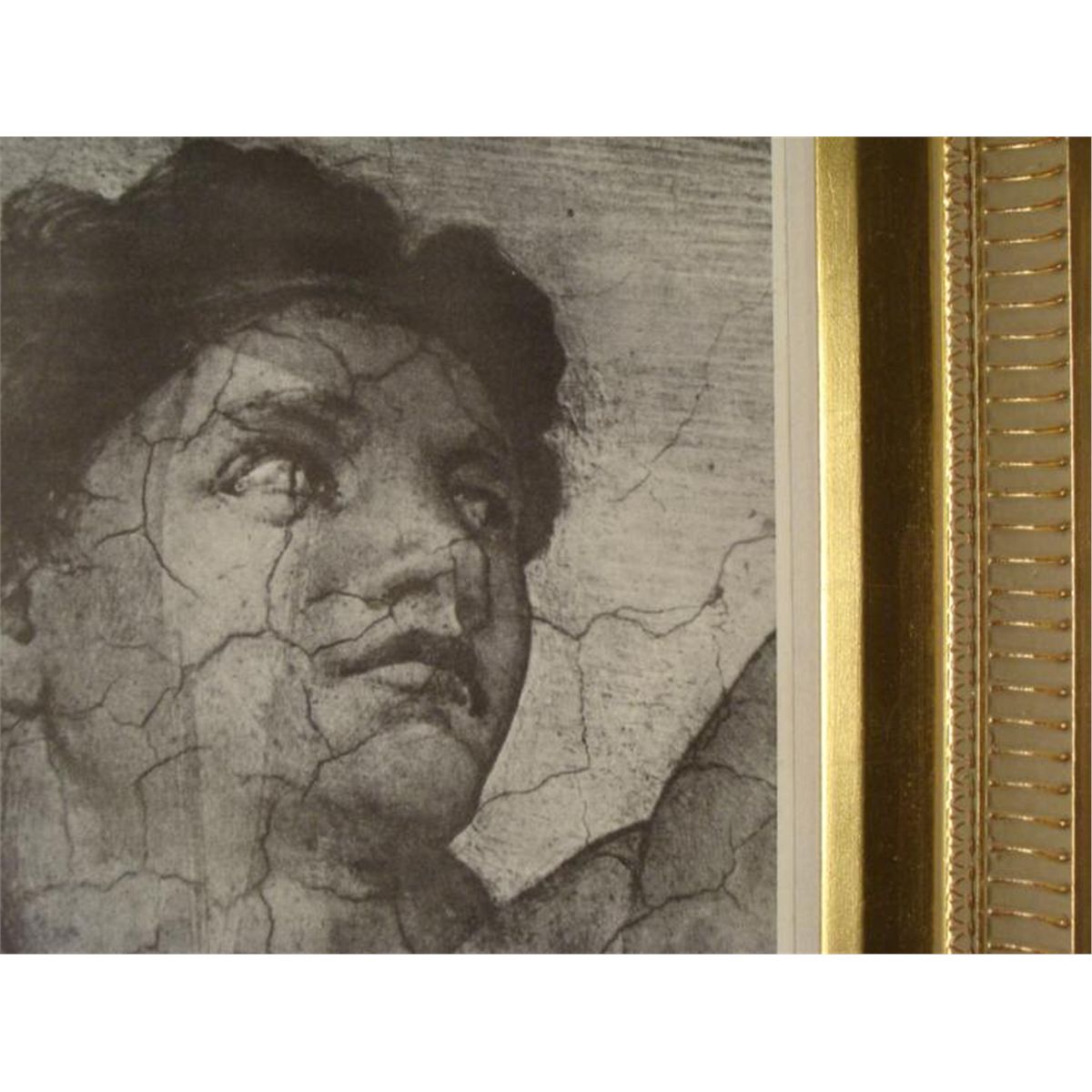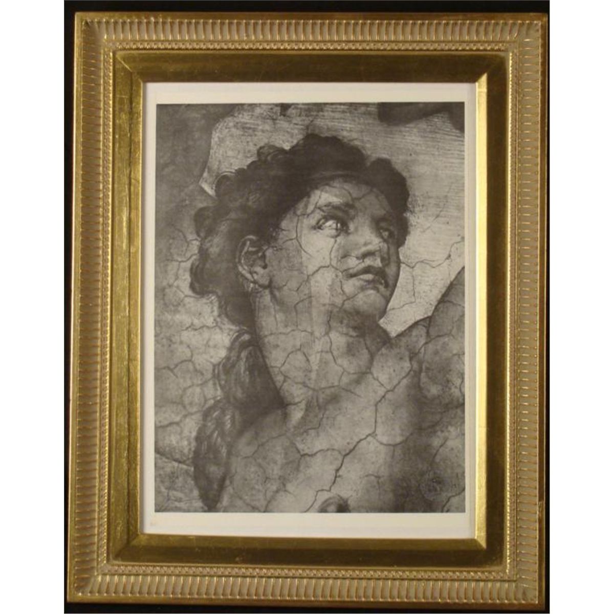 This is a detail from a famous classical work, and it will bring a classical ambience to any room. * Artist: MichelangeloMedium: Print on paperSheet size: 11 x 15 inchesPublished by: Musee du LouvreFraming: In gold painted wood frameFrame size: 16 x 20 inchesCondition: Excellent