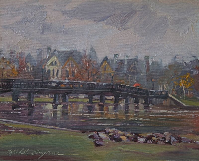Michele Byrne, Red Umbrella, Oil on Canvas Panel