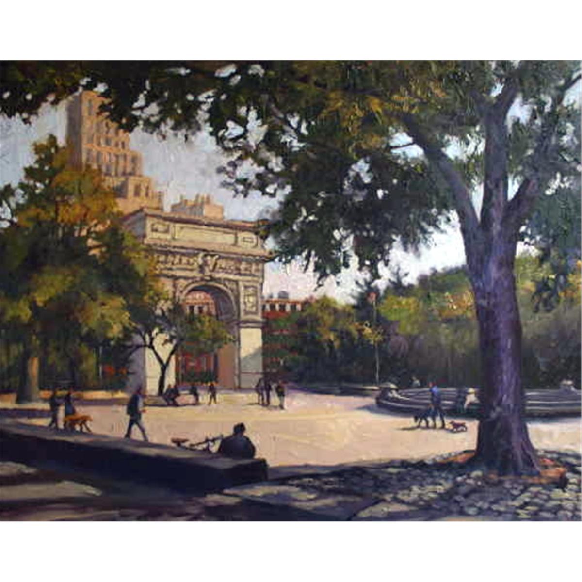 A sunny day in famous Washington Square by the exciting, new American Impressionist who is quickly building a well deserved reputation among critics and collectors. 24x30 oil on canvas. Signed by the artist, on stretchers, unframed. Domestic shipping and packing $125. International depends upon location.