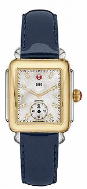 Model: MWW06V000048 - CASE = [Material:Stainless Steel], [Case Diameter:29], [Bezel:Fixed], [Case Back:Solid], [Water Resistant:50 Meters -165 Feet], [Crystal:Scratch Resistant Sapphire],; DIAL = [Color:Mother Of Pearl With Diamonds],; MOVEMENT = [Type:Quartz], [Crown:Push Down],; BAND = [Clasp:Tang], [Type:Blue Patent Leather], (Usually ships in 1 to 2 weeks.)