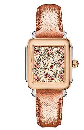 Model: MWW06V000082 - Case,; MATERIALSTAINLESS STEEL AND ROSE GOLD = [Case Diameter29], [BezelFixed], [Water Resistant50 Meters - 165 Feet], [CrystalScratch Resistant Sapphire], Dial,; COLORINTERLOCKING TOPAZ AND DIAMOND MOSAIC PATTERN = Movement,; TYPEQUARTZ = Band,; CLASPTANG = [TypeRose Gold Saffiano Leather], (Usually ships in 1 to 2 weeks.)