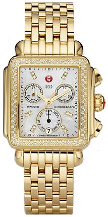 Model: MWW06P000100 - Case,; MATERIALPOLISHED YELLOW GOLD TONE = [Case Diameter33], [BezelFixed with 120 Diamonds Set (.66ct)], [Case BackSolid], [Water Resistant50 Meters - 165 Feet], [CrystalScratch Resistant Sapphire], Dial,; COLORWHITE MOTHER OF PEARL WITH DIAMOND HOUR MARKERS = Movement,; TYPEBATTERY POWERED QUARTZ = Band,; CLASPDOUBLE FOLDING PUSH BUTTON = [TypePolished Yellow Gold Tone], (Usually ships in 1 to 2 weeks.)