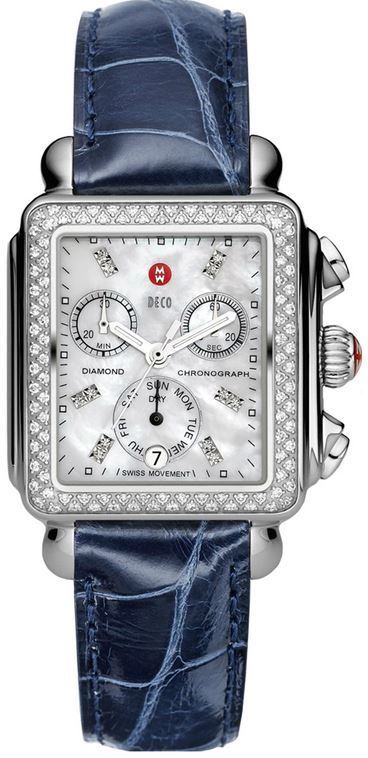 Model: MWW06P000196 - CASE = [Material:Stainless Steel], [Case Diameter:33], [Bezel:Fixed Stainless Steel With Diamonds], [Case Back:Solid], [Water Resistant:50 Meters -165 Feet], [Crystal:Scratch Resistant Sapphire], DIAL = [Color:Mother Of Pearl With Diamonds], MOVEMENT = [Type:Quartz], [Crown:Push Down], BAND = [Clasp:Tang], [Type:Blue Alligator Leather], (Usually ships in 1 to 2 weeks.)