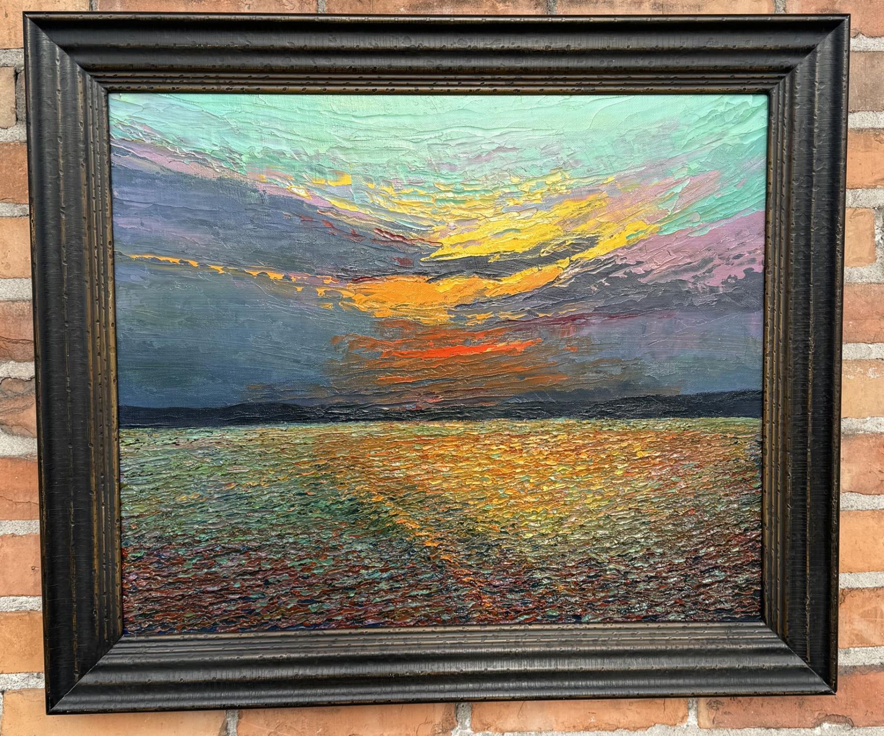25" by 29" framed. Michele Kapor was born into a ranching family in Montana and can appreciate the closeness of a mountain valley or the expanse of a desert sky. After graduating with a Bachelor of Arts degree from Arizona State University, she spent the next decade in the travel business. She is a world traveler and has spent many hours studying the various moods and lighting of landscapes all over the globe. Her career has taken her from the Bay Area of California back to her roots in Montana where she has resided since 1980 and works from her home studio. She is currently the Vice-President of the Montana Professional Artists Association. She is a founding member of MPAA and the Two River Movement artists groups. Kapor is also a member of the National Oil and Acrylic Painters Society (NOAPS)