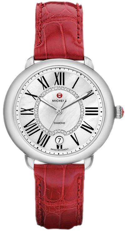 Model: MWW21B000023 - CASE = [Material:Stainless Steel], [Case Diameter:36], [Bezel:Fixed], [Case Back:Solid], [Water Resistant:50 Meters -165 Feet], [Crystal:Scratch Resistant Sapphire], DIAL = [Color:White Mother Of Pearl With Diamonds], MOVEMENT = [Type:Quartz], [Crown:Push Down], BAND = [Clasp:Tang], [Type:Red Alligator Leather], (Usually ships in 1 to 2 weeks.)