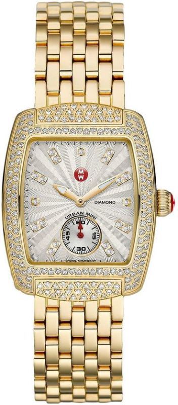 Model: MWW02A000565 - CASE = [Material:plated 18k gold], [Case Diameter:29], [Bezel:Fixed Stainless Steel With Diamonds], [Case Back:Solid], [Water Resistant:50 Meters -165 Feet], [Crystal:Scratch Resistant Sapphire], DIAL = [Color:Silver Guilloche With Diamonds], MOVEMENT = [Type:Quartz], [Crown:Push Down], BAND = [Clasp:Deployment], [Type:18kt Yellow Gold Plated Stainless Steel With Diamonds], (Usually ships in 1 to 2 weeks.)