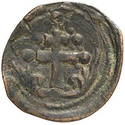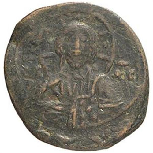 Michele VII (1071-1078). Follis anonimo. D/ Busto frontale di Cristo. R/ Croce patriarcale con un globulo e due globetti ad ogni estremità. Sotto, due ornamenti floreali. Cfr. D.O. pp. 694-5. BMC. (First Crusade) p. 554. gr. 4.99 NC. AE. qBB/BB.