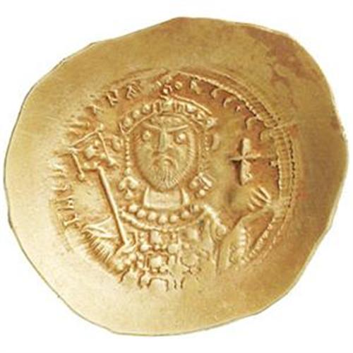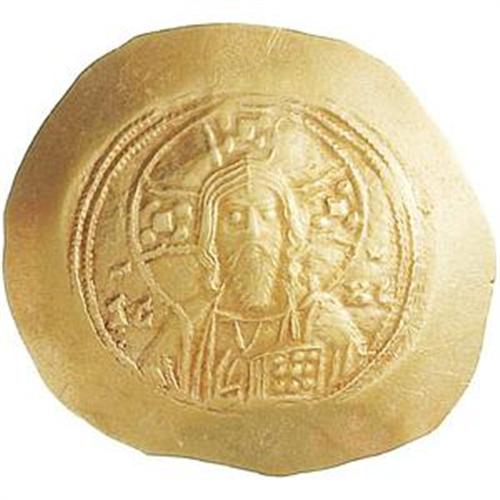 Monete Bizantine. Michele VII Ducas (1071-1078). AU histamenon nomisma, Constantinople. D/ Cristo benedicente, stante di fronte, con aureola crociata, pallium e colobium, tiene nella sinistra il libro dei Vangeli. R/ Busto frontale di Michele VII, con corona e loros, che tiene labaro e globo crucigero. D.O. 2. gr. 4.39 AU. Bel BB+/qSPL.