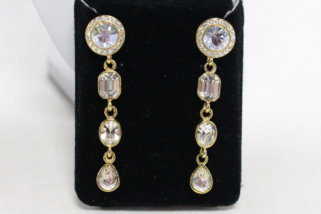 Michelle Merizzi Designer 14kt Gold Plated Drop Style Earrings With Clear Swarovski Crystals (Appr