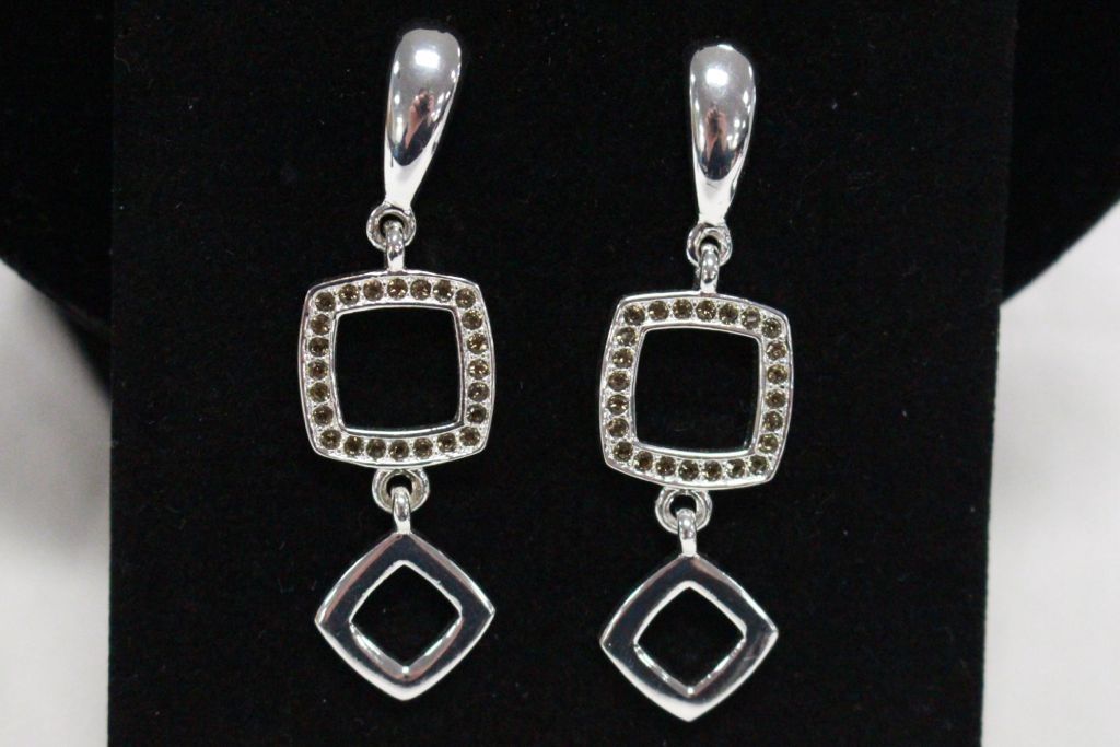 Michelle Merizzi Designer Rhodium Plated DropStyle Earrings With Champagne Color Swarovski Crystals