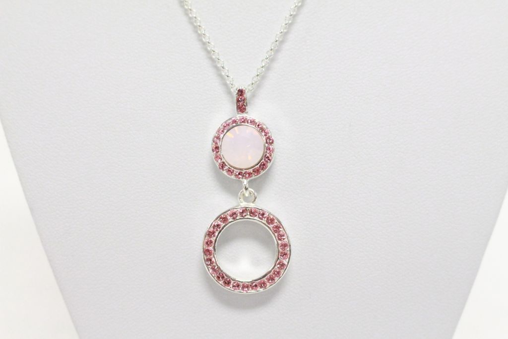 Michelle Merizzi Designer Sterling Silver Plated Necklace and Drop Style Pendant With Rose Colered and Bead Swarovski Crystals (Appraised $950)