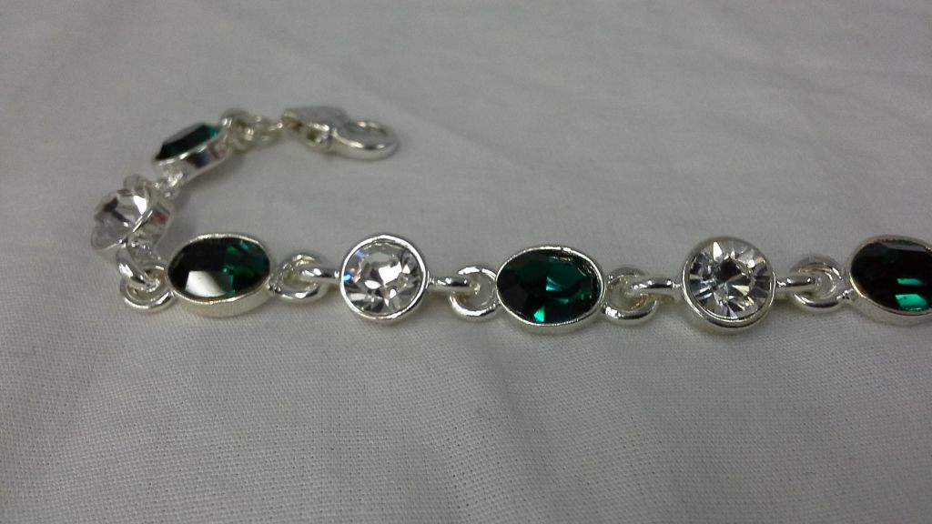 Michelle Merizzi "May" Birthstone Bracelet With Emerald Green and Clear Swarovski Crystals