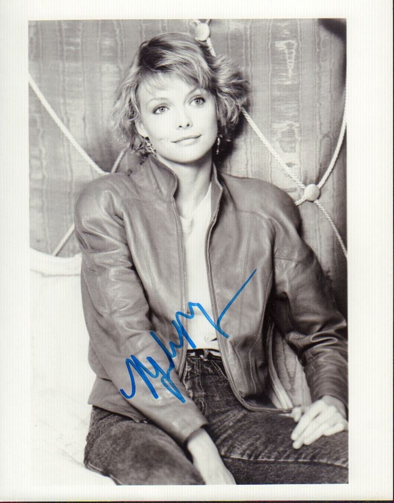 Black and white 8x10 photo signed by Michelle Pfeiffer. All items come with a certificate of authenticity good for the life of the piece.