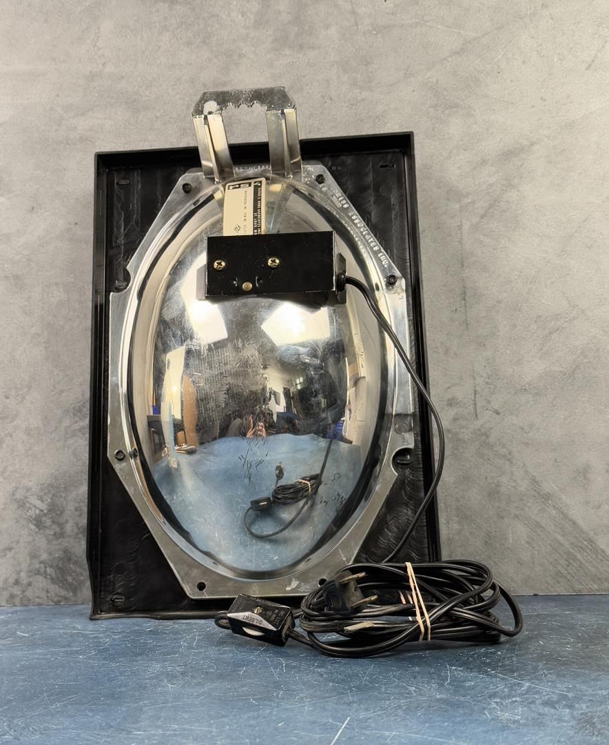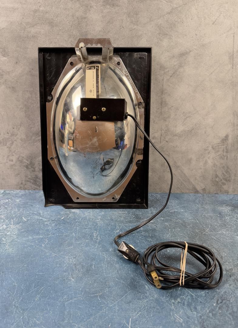 8" by 12". Working. Cracked face trim on bottom center of sign.