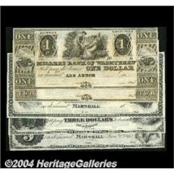 Michigan from Millers to MarshallAnn Arbor, MI - Millers Bank of Washtenaw $1 remainder G2 Unc; $2 remainder G4 Unc.Marshall - Bank of Michigan $1 remainder G2 Unc.; $3 remainder G4 Unc.; $5 remainder G6 Unc. 5 notes <BR><BR><B>Important notice:</B> Heritage usually auctions material at the rate of 200-250 lots per hour. On some occasions eBay Live bid software or the Internet may not be able to keep up with the pace of the auction. We recommend placing a realistic absentee bid now as insurance to avoid disappointment. Occasionally the auctioneer may eliminate or reject an eBay Live bid, and the auctioneer may also reopen a lot after the close of the eBay live bidding (usually because we missed an audience bid), and may reject your bid even if it shows you as the winning bidder. By bidding via eBay Live, you agree that Heritage may award the lot to another bidder at its sole discretion under the circumstances described above or any other reasonable circumstances. Since eBay bids are not shown to us until we open the lot on the floor, we treat those bids just like floor bids. In most cases the floor responds before the eBay bid is presented to us, due to Internet lag time, so for consistency we have made it a policy that floor bids are always considered first over tie eBay live bids. Also please note that all Heritage lots purchased through eBay Live carry a 20% Buyer's Premium. Please make sure you read the Terms and Conditions before you bid. <BR><BR><B>IMPORTANT ANNOUNCEMENT ABOUT RESERVES:</B> Heritage now divulges all reserves on its web site 7 days before every auction. If you want to know whether the reserve on this lot has been met, and if not, what the reserve amount is, please visit this lot page on the HeritageCoin.com web site, or email: bid@HeritageGalleries.com