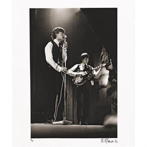 <B>Mick Jagger and Keith Richards Photo by Philip Townsend.</B></I> A b&w 20" x 24" photo of Mick Jagger and Keith Richards onstage circa 1963, by photographer Philip Townsend, noted for his photos of '60s-era music icons. The photo is #3 in a limited edition of 50, signed by Townsend in the lower right corner, and is in Excellent condition.<BR><BR><b>Shipping:</b> Flat Material, Large (<a target="_blank" href="http://www.heritageauctions.com/common/shipping.php">view shipping information</a>)